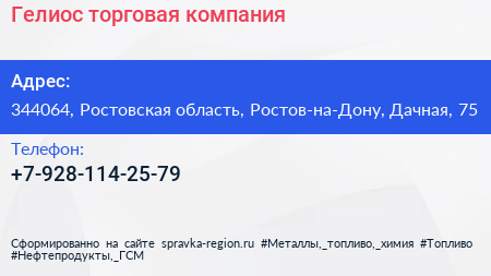 Гелиос, торговая компания по адресу 344064, Ростовская область, Ростов-на-Дону, Дачная, 75 в дальнейшем Организация, размещена в следующих категориях: