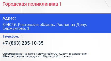 Городская поликлиника №1 по адресу 344029, Ростовская область, Ростов-на-Дону, Сержантова, 1 в дальнейшем Организация, размещена в следующих категориях:
