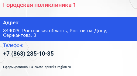 Городская поликлиника №1 по адресу 344029, Ростовская область, Ростов-на-Дону, Сержантова, 3 в дальнейшем Организация, размещена в следующих категориях: