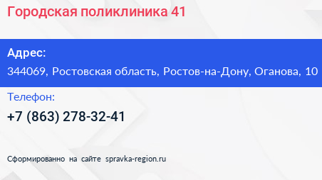 Городская поликлиника №41 по адресу 344069, Ростовская область, Ростов-на-Дону, Оганова, 10 в дальнейшем Организация, размещена в следующих категориях: