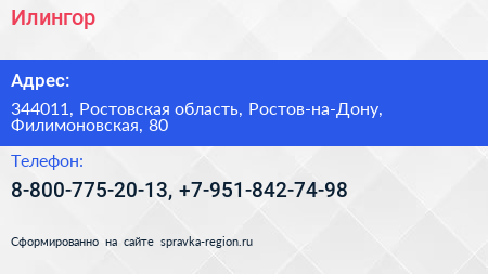 Илингор по адресу 344011, Ростовская область, Ростов-на-Дону, Филимоновская, 80 в дальнейшем Организация, размещена в следующих категориях: