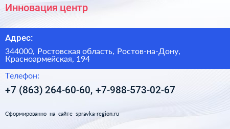 Инновация, центр по адресу 344000, Ростовская область, Ростов-на-Дону, Красноармейская, 194 в дальнейшем Организация, размещена в следующих категориях: