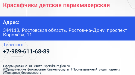 Красафчики, детская парикмахерская по адресу 344113, Ростовская область, Ростов-на-Дону, проспект Королёва, 11 в дальнейшем Организация, размещена в следующих категориях: