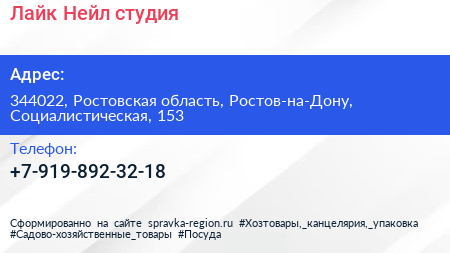 Лайк Нейл, студия по адресу 344022, Ростовская область, Ростов-на-Дону, Социалистическая, 153 в дальнейшем Организация, размещена в следующих категориях: