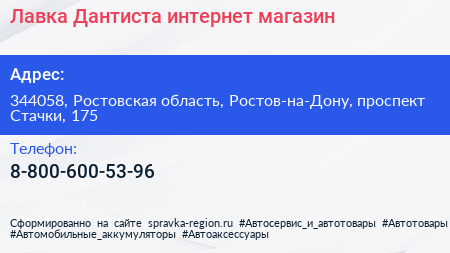 Лавка Дантиста, интернет-магазин по адресу 344058, Ростовская область, Ростов-на-Дону, проспект Стачки, 175 в дальнейшем Организация, размещена в следующих категориях:
