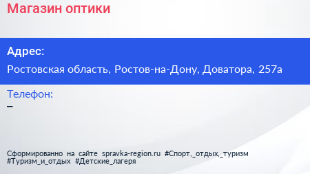 Магазин оптики по адресу Ростовская область, Ростов-на-Дону, Доватора, 257а в дальнейшем Организация, размещена в следующих категориях: