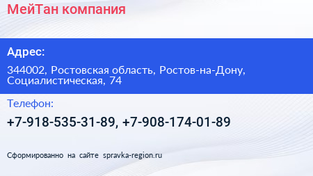 МейТан, компания по адресу 344002, Ростовская область, Ростов-на-Дону, Социалистическая, 74 в дальнейшем Организация, размещена в следующих категориях: