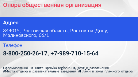 Опора, общественная организация по адресу 344015, Ростовская область, Ростов-на-Дону, Малиновского, 66/1 в дальнейшем Организация, размещена в следующих категориях:
