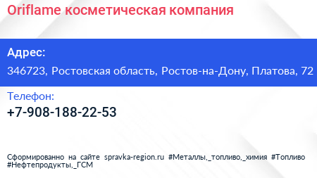 Oriflame, косметическая компания по адресу 346723, Ростовская область, Ростов-на-Дону, Платова, 72 в дальнейшем Организация, размещена в следующих категориях: