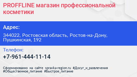 PROFFLINE, магазин профессиональной косметики по адресу 344022, Ростовская область, Ростов-на-Дону, Пушкинская, 192 в дальнейшем Организация, размещена в следующих категориях: