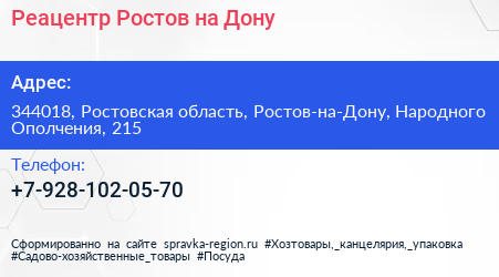 Реацентр Ростов-на-Дону по адресу 344018, Ростовская область, Ростов-на-Дону, Народного Ополчения, 215 в дальнейшем Организация, размещена в следующих категориях: