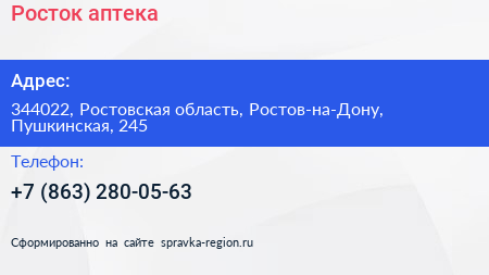 Росток, аптека по адресу 344022, Ростовская область, Ростов-на-Дону, Пушкинская, 245 в дальнейшем Организация, размещена в следующих категориях: