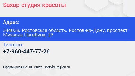 Saxaр, студия красоты по адресу 344038, Ростовская область, Ростов-на-Дону, проспект Михаила Нагибина, 19 в дальнейшем Организация, размещена в следующих категориях: