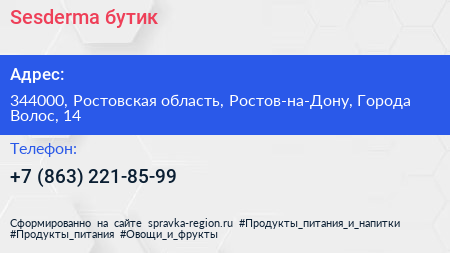 Sesderma, бутик по адресу 344000, Ростовская область, Ростов-на-Дону, Города Волос, 14 в дальнейшем Организация, размещена в следующих категориях: