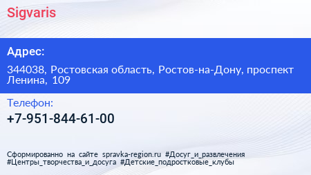 Sigvaris по адресу 344038, Ростовская область, Ростов-на-Дону, проспект Ленина, 109 в дальнейшем Организация, размещена в следующих категориях: