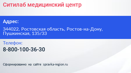 Ситилаб, медицинский центр по адресу 344022, Ростовская область, Ростов-на-Дону, Пушкинская, 135/33 в дальнейшем Организация, размещена в следующих категориях: