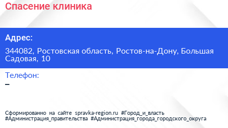 Спасение, клиника по адресу 344082, Ростовская область, Ростов-на-Дону, Большая Садовая, 10 в дальнейшем Организация, размещена в следующих категориях: