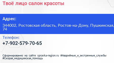 Твоё лицо, салон красоты по адресу 344002, Ростовская область, Ростов-на-Дону, Пушкинская, 74 в дальнейшем Организация, размещена в следующих категориях: