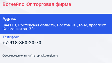 Вогнейлс-Юг, торговая фирма по адресу 344113, Ростовская область, Ростов-на-Дону, проспект Космонавтов, 32в в дальнейшем Организация, размещена в следующих категориях: