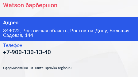 Watson, барбершоп по адресу 344022, Ростовская область, Ростов-на-Дону, Большая Садовая, 144 в дальнейшем Организация, размещена в следующих категориях: