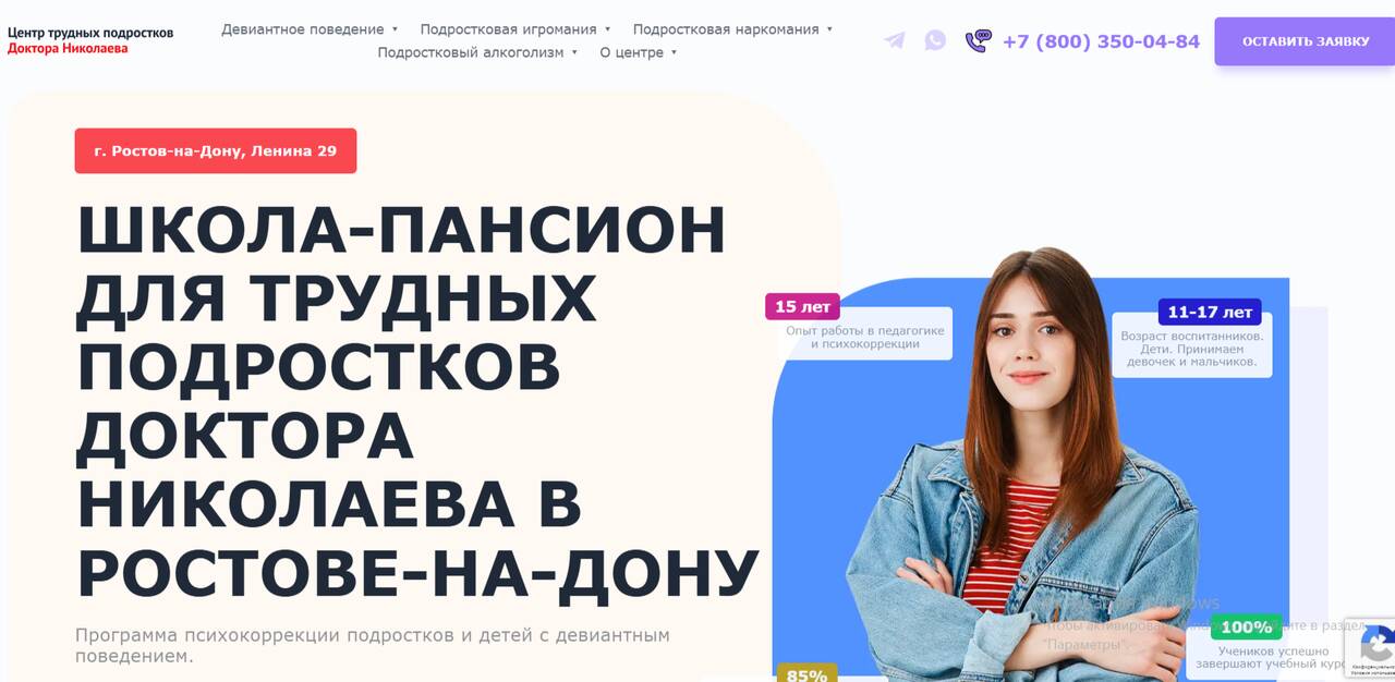 Школа-пансион для трудных подростков доктора Николаева по адресу проспект Ленина, 113, Ростов-на-Дону в дальнейшем Организация, размещена в следующих категориях: