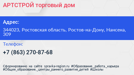 АРТСТРОЙ, торговый дом по адресу 344023, Ростовская область, Ростов-на-Дону, Нансена, 309 в дальнейшем Организация, размещена в следующих категориях: