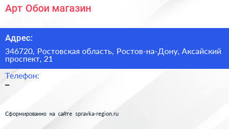 Арт-Обои, магазин по адресу 346720, Ростовская область, Ростов-на-Дону, Аксайский проспект, 21 в дальнейшем Организация, размещена в следующих категориях: