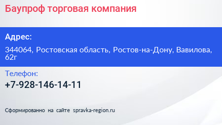 Баупроф, торговая компания по адресу 344064, Ростовская область, Ростов-на-Дону, Вавилова, 62г в дальнейшем Организация, размещена в следующих категориях:
