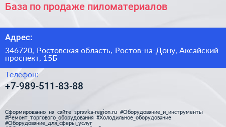 База по продаже пиломатериалов по адресу 346720, Ростовская область, Ростов-на-Дону, Аксайский проспект, 15Б в дальнейшем Организация, размещена в следующих категориях: