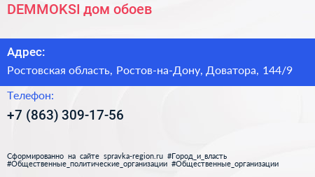 DEMMOKSI, дом обоев по адресу Ростовская область, Ростов-на-Дону, Доватора, 144/9 в дальнейшем Организация, размещена в следующих категориях: