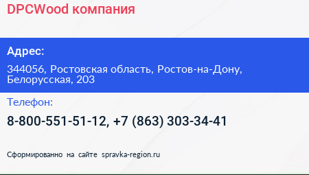 DPCWood, компания по адресу 344056, Ростовская область, Ростов-на-Дону, Белорусская, 203 в дальнейшем Организация, размещена в следующих категориях: