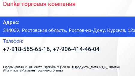 Danke, торговая компания по адресу 344039, Ростовская область, Ростов-на-Дону, Курская, 12а в дальнейшем Организация, размещена в следующих категориях: