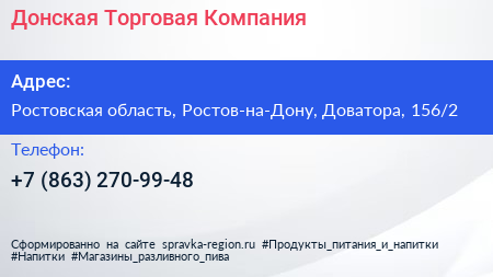 Донская Торговая Компания по адресу Ростовская область, Ростов-на-Дону, Доватора, 156/2 в дальнейшем Организация, размещена в следующих категориях: