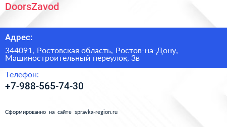 DoorsZavod по адресу 344091, Ростовская область, Ростов-на-Дону, Машиностроительный переулок, 3в в дальнейшем Организация, размещена в следующих категориях: