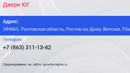 Двери ЮГ по адресу 344065, Ростовская область, Ростов-на-Дону, Вятская, 93а в дальнейшем Организация, размещена в следующих категориях: