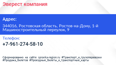 Эверест, компания по адресу 344016, Ростовская область, Ростов-на-Дону, 1-й Машиностроительный переулок, 9 в дальнейшем Организация, размещена в следующих категориях: