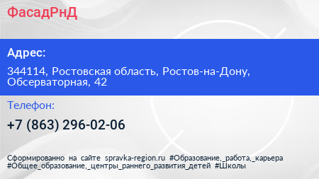 ФасадРнД по адресу 344114, Ростовская область, Ростов-на-Дону, Обсерваторная, 42 в дальнейшем Организация, размещена в следующих категориях: