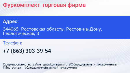 Фуркомплект, торговая фирма по адресу 344065, Ростовская область, Ростов-на-Дону, Геологическая, 3 в дальнейшем Организация, размещена в следующих категориях: