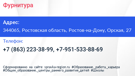 Фурнитура по адресу 344065, Ростовская область, Ростов-на-Дону, Орская, 27 в дальнейшем Организация, размещена в следующих категориях: