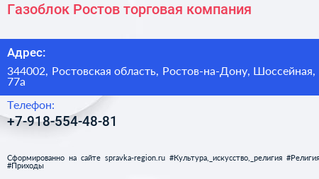 Газоблок Ростов, торговая компания по адресу 344002, Ростовская область, Ростов-на-Дону, Шоссейная, 77а в дальнейшем Организация, размещена в следующих категориях: