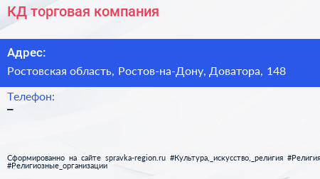 КД, торговая компания по адресу Ростовская область, Ростов-на-Дону, Доватора, 148 в дальнейшем Организация, размещена в следующих категориях: