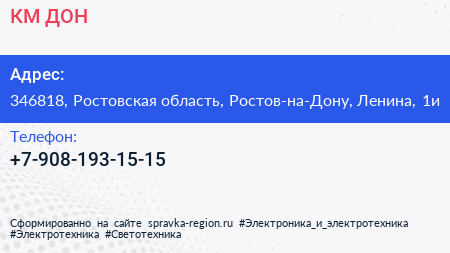 КМ ДОН по адресу 346818, Ростовская область, Ростов-на-Дону, Ленина, 1и в дальнейшем Организация, размещена в следующих категориях: