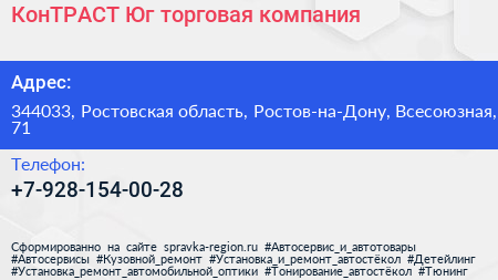 КонТРАСТ-Юг, торговая компания по адресу 344033, Ростовская область, Ростов-на-Дону, Всесоюзная, 71 в дальнейшем Организация, размещена в следующих категориях: