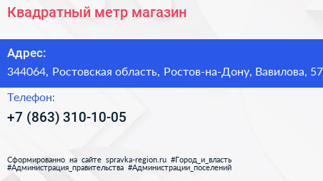 Квадратный метр, магазин по адресу 344064, Ростовская область, Ростов-на-Дону, Вавилова, 57 в дальнейшем Организация, размещена в следующих категориях: