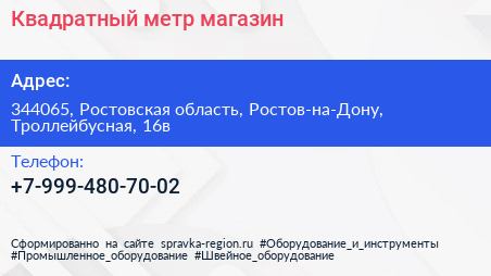 Квадратный метр, магазин по адресу 344065, Ростовская область, Ростов-на-Дону, Троллейбусная, 16в в дальнейшем Организация, размещена в следующих категориях: