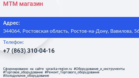 МТМ, магазин по адресу 344064, Ростовская область, Ростов-на-Дону, Вавилова, 56 в дальнейшем Организация, размещена в следующих категориях: