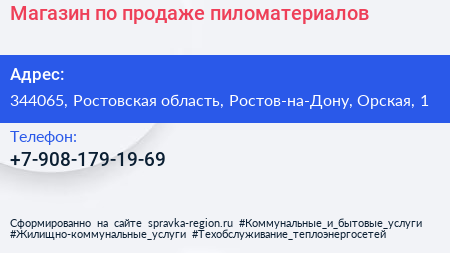 Магазин по продаже пиломатериалов по адресу 344065, Ростовская область, Ростов-на-Дону, Орская, 1 в дальнейшем Организация, размещена в следующих категориях: