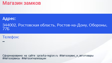 Магазин замков по адресу 344002, Ростовская область, Ростов-на-Дону, Обороны, 77Б в дальнейшем Организация, размещена в следующих категориях: