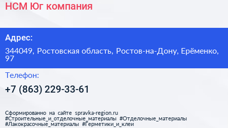 НСМ-Юг, компания по адресу 344049, Ростовская область, Ростов-на-Дону, Ерёменко, 97 в дальнейшем Организация, размещена в следующих категориях: