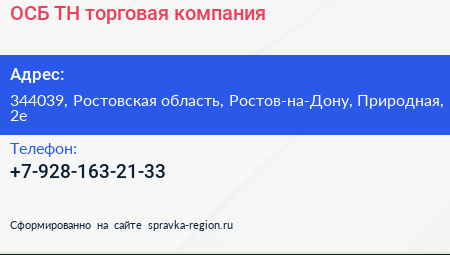 ОСБ ТН, торговая компания по адресу 344039, Ростовская область, Ростов-на-Дону, Природная, 2е в дальнейшем Организация, размещена в следующих категориях: